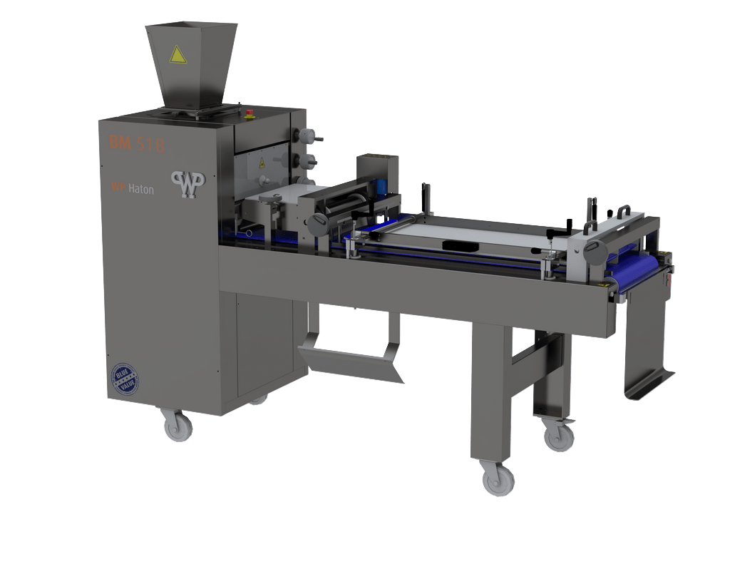 The WP Haton BM 51 B Long Moulder is a highly versatile and precise machine designed for bakeries requiring exceptional control over the shaping and internal structure of their breads. Utilizing an efficient drum principle and innovative adjustable folding blades, it is engineered to handle a wide variety of wheat and wheat/rye doughs, making it ideal for producing both short and long loaves with perfect consistency.