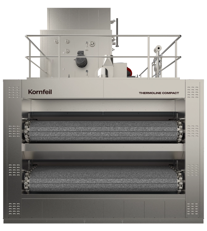 The compact ThermoStar Classic solution has a heating unit integrated directly into the oven, including a burner for the relevant fuel, which means that it does not require a thermal oil boiler room. This solution allows for short installation times and a significantly faster start to the baking process itself.