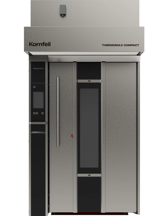 The ThermoMax Compact adapts to your production needs, providing flexibility for varying baking volumes and product types. Backed by Kornfeil expertise, it delivers tailored solutions for every bakery’s requirements.